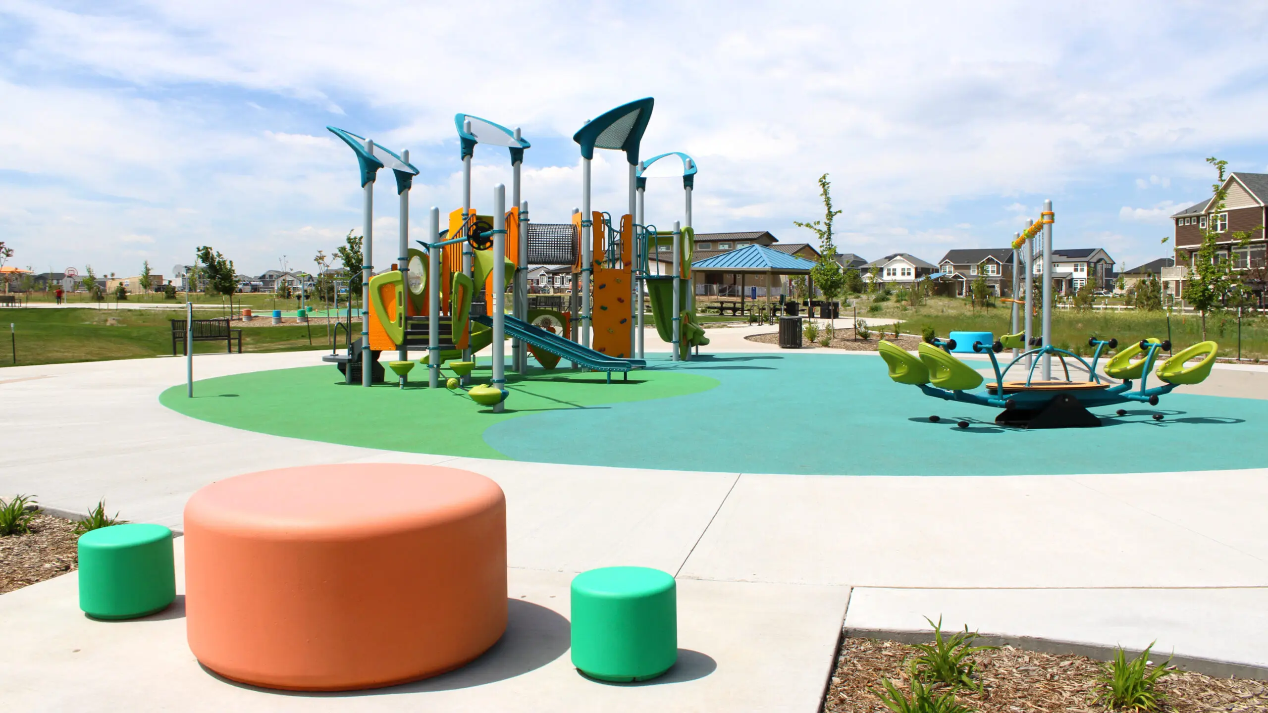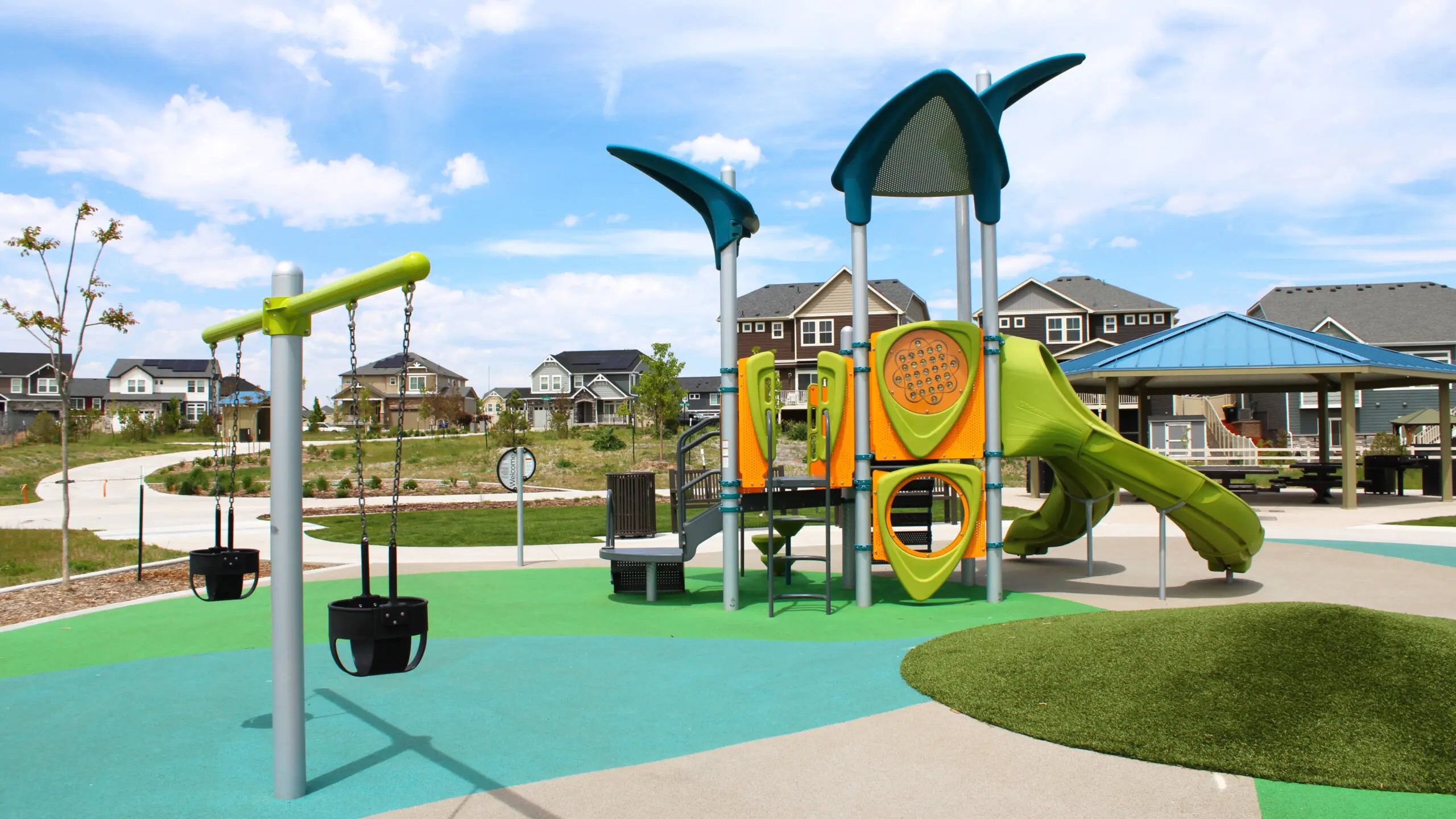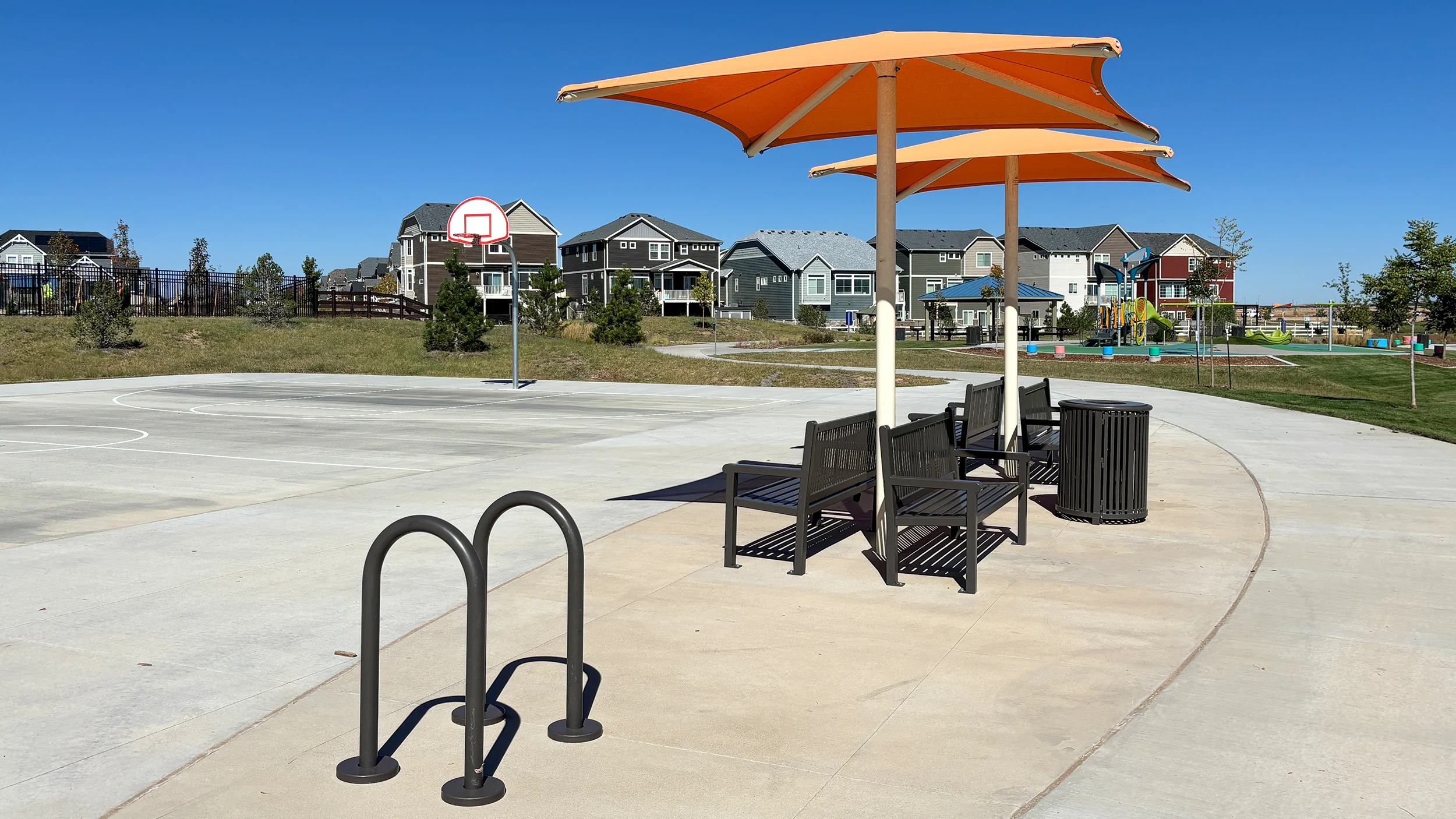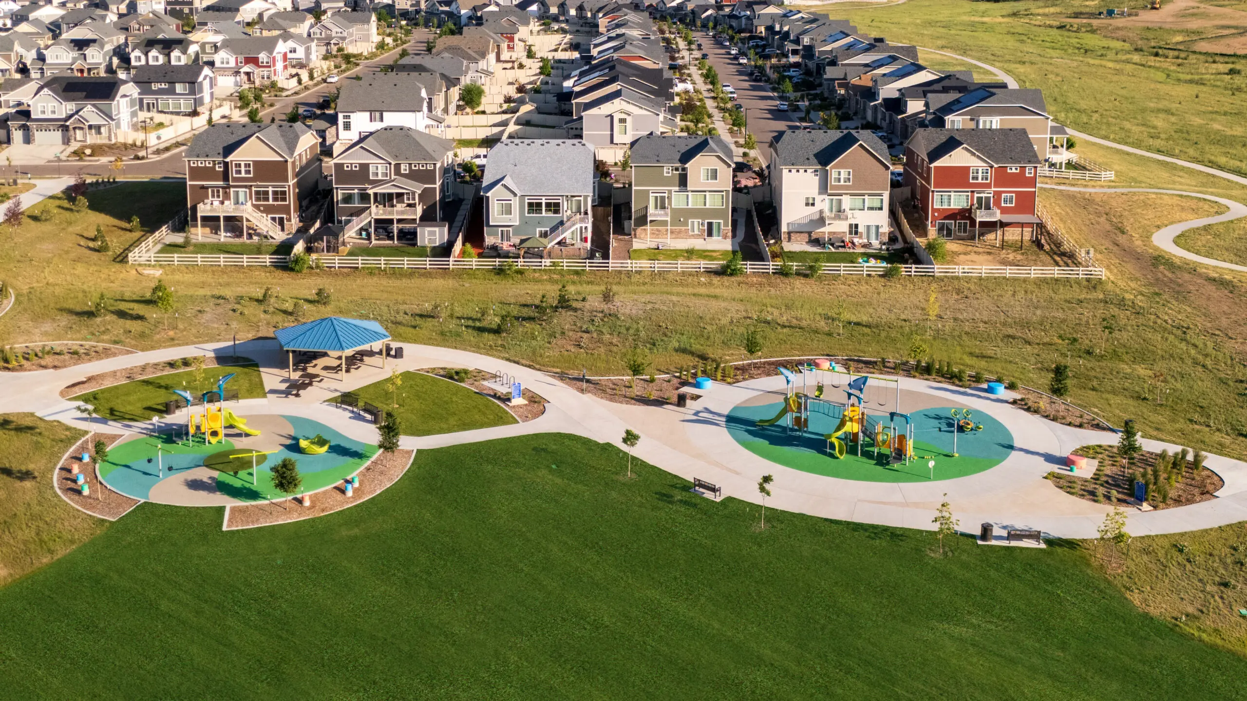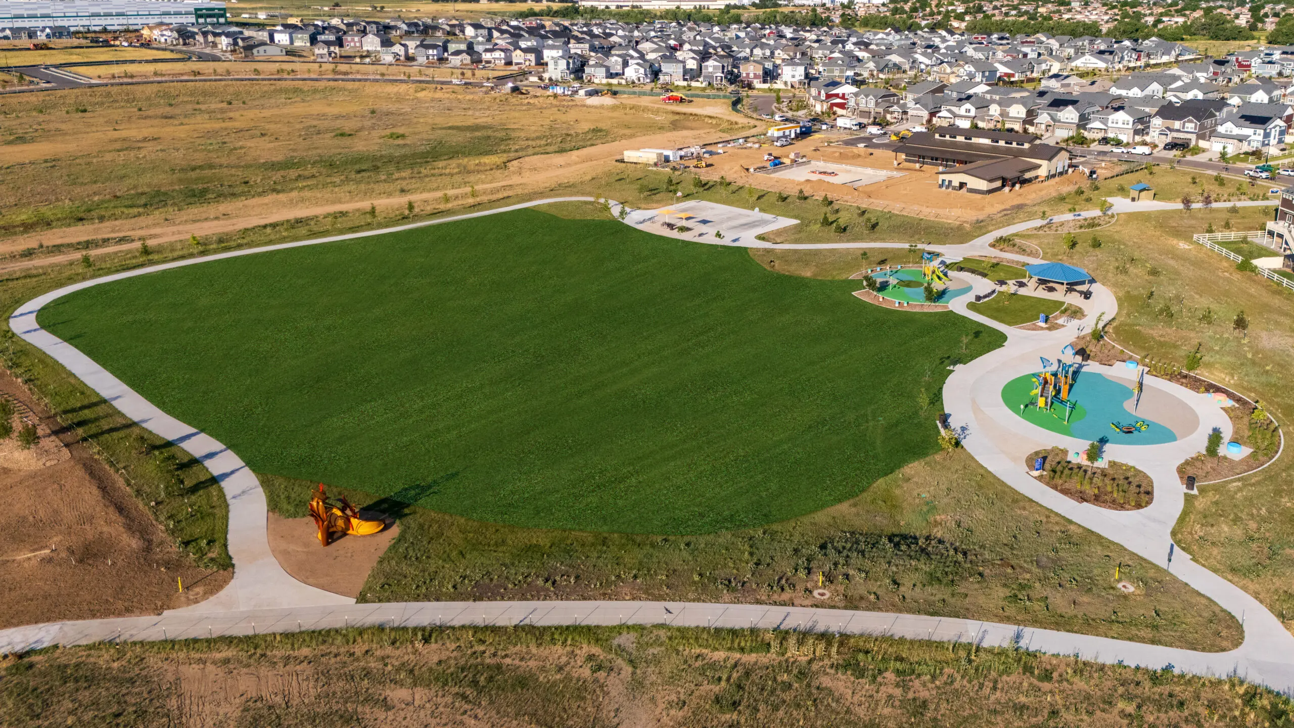 This Neighborhood Park provides a physical connection between the open space corridor and the future Aurora Public School K-8 site. It is anticipated that the park and school will share some of the recreation facilities. The program of this park includes two playgrounds, a picnic shelter, a basketball court, a restroom facility, a segment of the multi-use trail, a multi-use field, multiple opportunities for public art and special water-wise demonstration garden areas.